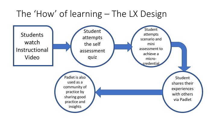 Each module would be constructed in a way where students would access the content, attempts self assessment questions before applying the learning to a problem solving sceanrio.